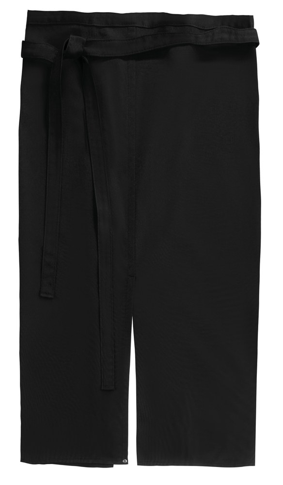 This stylish waist apron is split on the front and it will give you great freedom of movement thanks to its knee length .