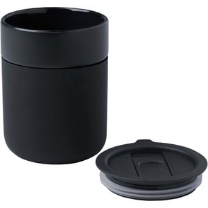 Java 330 ml ceramic tumbler with silicone wrap and plastic lid - Solid Black - EgotierPro 100808