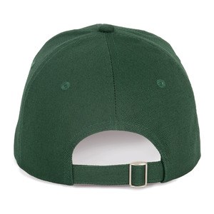 6-panel cap with adjustable self-locking metal buckle.