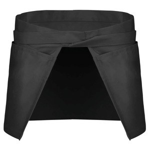 Short polycotton apron with 190 gsm fabric weight for durable professional protection. This Kariban K896 waist apron is designed for chefs, butchers, and service staff who require both mobility and utility. Featuring a blend of polyester and cotton, it ensures long-lasting wear and easy maintenance in demanding work environments. The design includes five integrated pockets—three large and two small—providing ample space for tools, order pads, or personal items. With a width of 70 cm and a height of 26 cm, it provides waist-to-side coverage without restricting movement. The adjustable handle ties at the front for a secure fit. Ideal for bulk purchase by restaurants or as a customizable canvas for staff uniforms, this apron supports various branding techniques including screen printing and embroidery.
