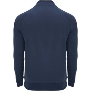 1x1 rib in back collar, cuffs and hem.