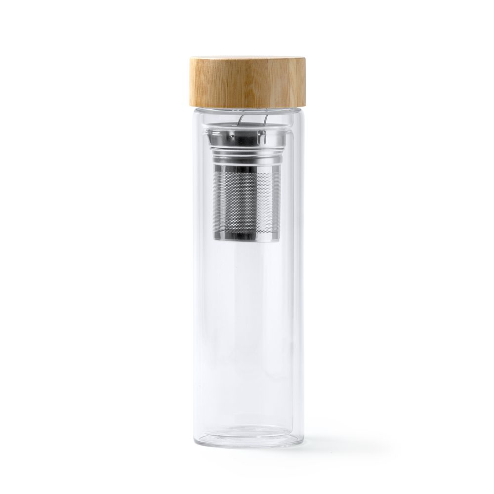 VERTUS Double-walled glass made of borosilicate glass with bamboo lid