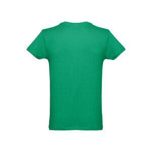 Tubular t-shirt for men in with a regular cut in jersey 100% cotton (150 g/m²) with carded cotton yarn (colour 183: 90% cotton/10% viscose). Features a 1x1 rib collar with jersey reinforcement ribbon and double seam on sleeves and hemline