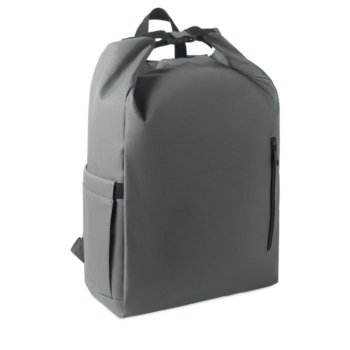 Features a zippered front pocket, elastic side pocket, and adjustable shoulder straps.