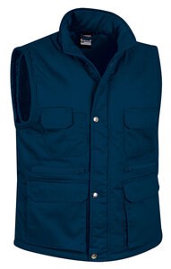 Multi-Pocket Work Vest: Our best-selling vest is a great value for money and comes in a wide range of colours and sizes. Made of a sturdy cotton twill fabric blended with polyester outer fabric for strength and durability, smooth inner lining and inner quilting for ensuring excellent thermal insulation. Stand-up collar with full-zip flap and snap button front closure, which provides warmth and comfort. Elasticated waistband and armholes for a secure and comfortable fit, adjustable waist with side snap button fastening for a better fit, a tailpiece that covers the lumbar zone for added comfort and also provides a large printing area.Two front gusseted pockets, two upper velcro flap pockets, two slanted pockets, two zippered pockets at intermediate height, a pen holder and an inner velcro pocket for a secure and convenient storage. Includes an inside back zip for easy marking with different methods: screen printing, embroidery, transfer printing, badges, shields, vinyl application. Ideal as workwear, uniforms and versatile use.