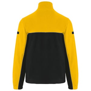 Contrasting piping between the two-tone parts of the garment (body and sleeves, front and back).